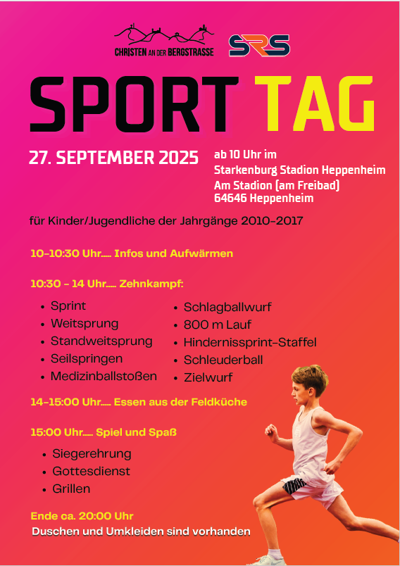 Am 27.09.2025, von 10-20 Uhr, findet der SRS Sporttag im Starkenburg Stadion statt.
